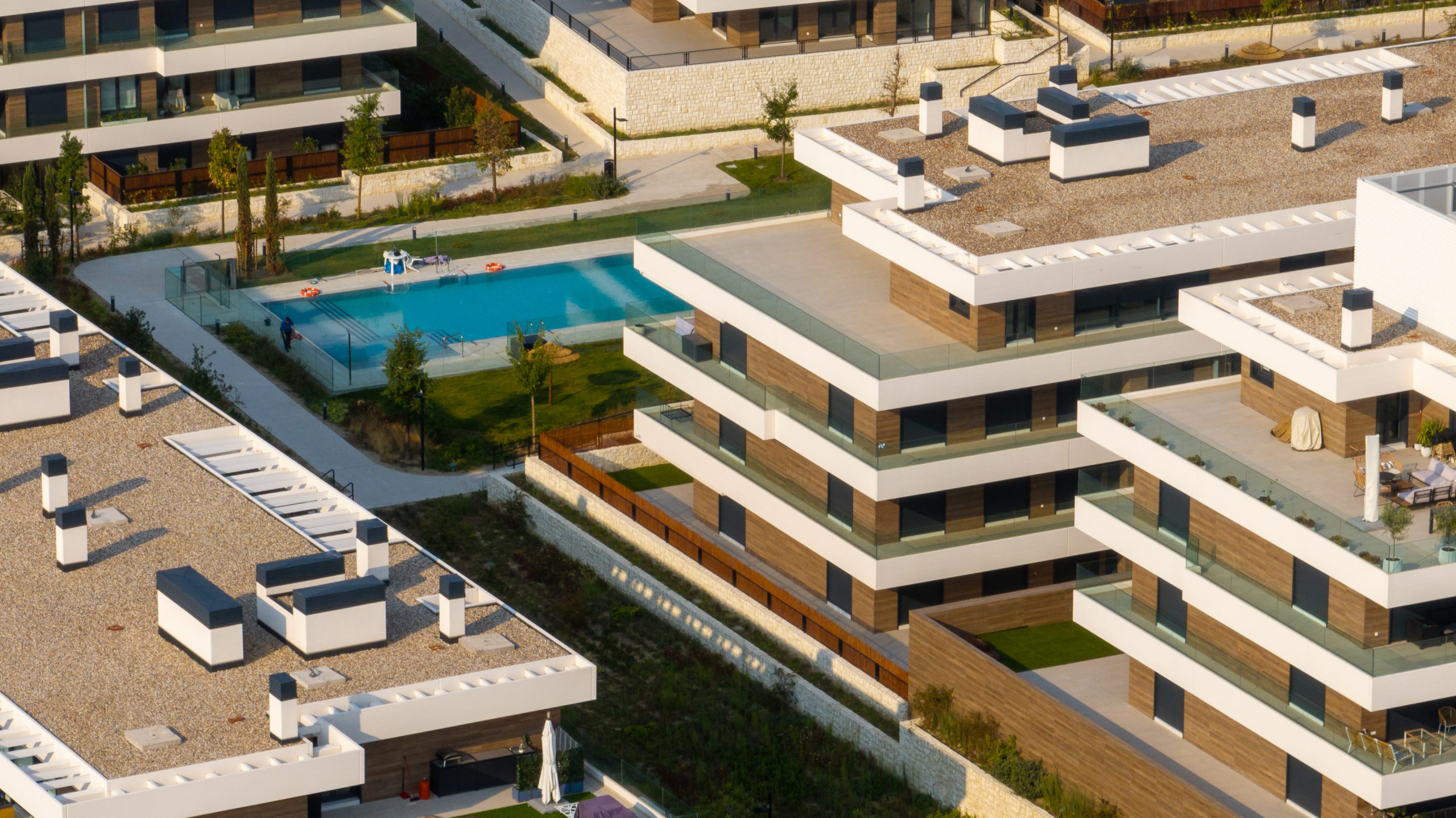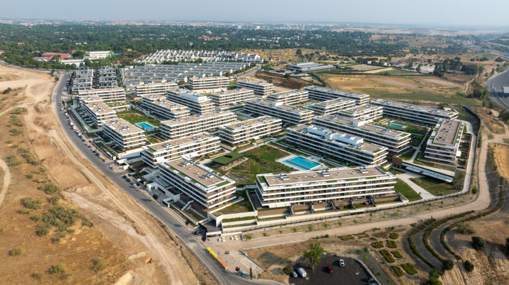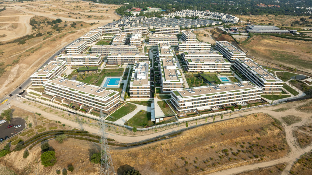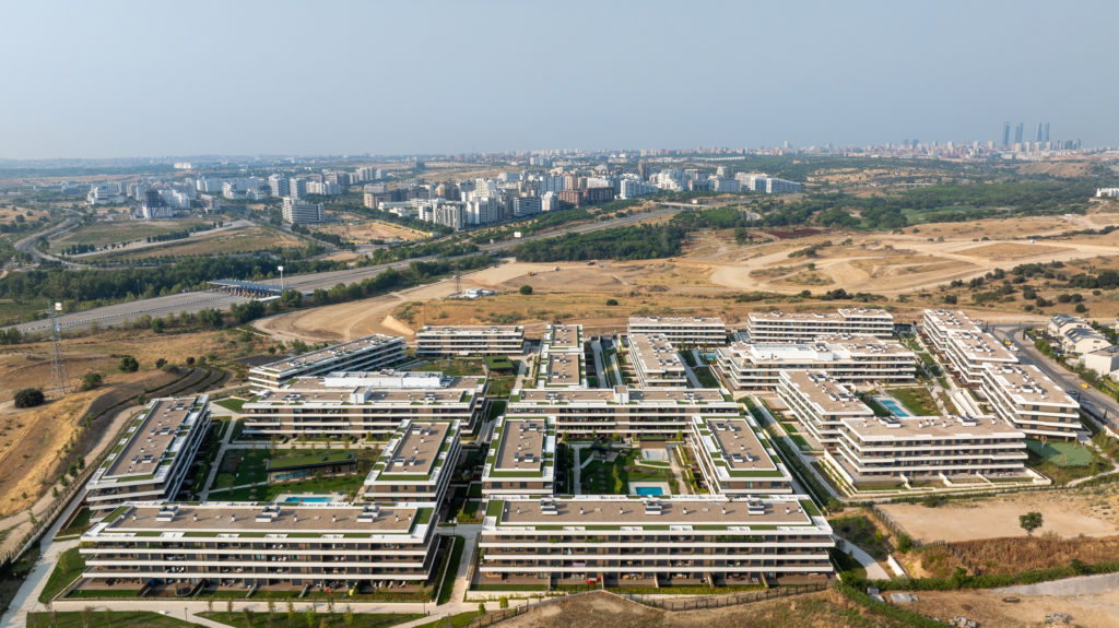 Este exclusivo conjunto residencial se ubica en uno de los entornos más singulares de Madrid, La Moraleja, rodeado de vegetación autóctona y extensos jardines privados. La búsqueda de una arquitectura serena y contemporánea llevó a los arquitectos a concebir una envolvente limpia y homogénea, capaz de integrarse con naturalidad en el paisaje.